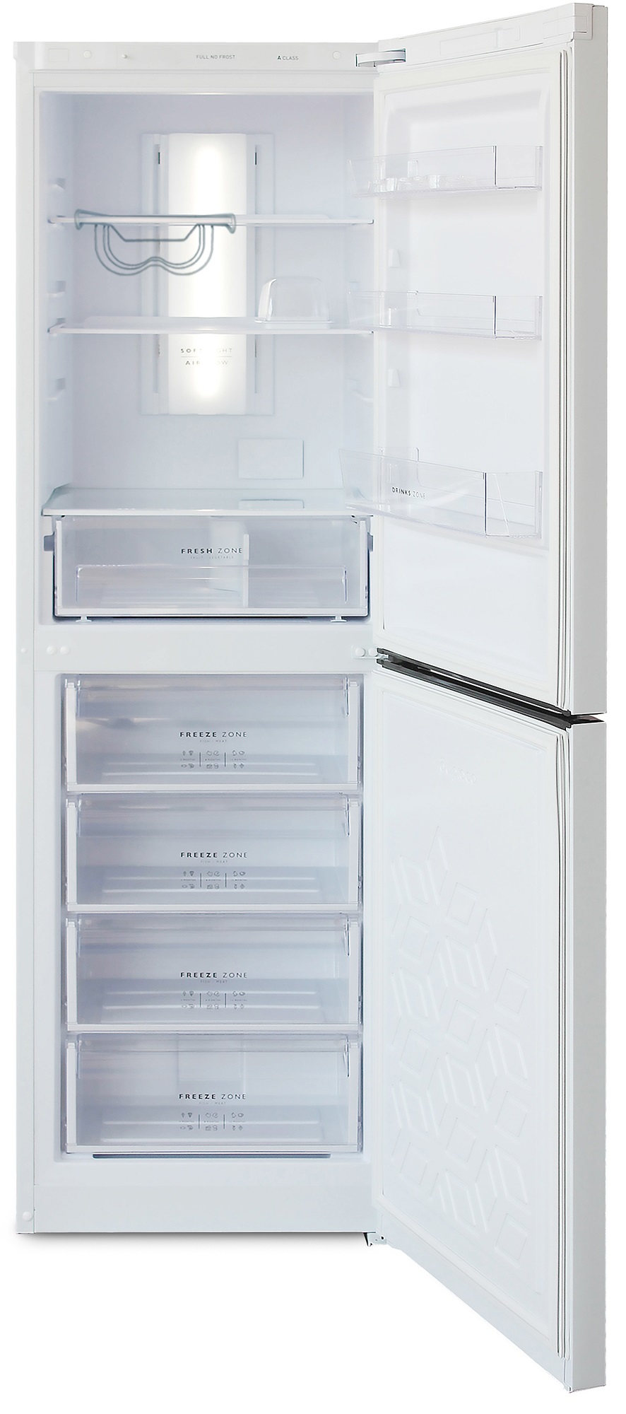 Холодильник оснащён одним компрессором и системой No Frost, которая обеспечивает равномерное охлаждение и предотвращает образование льда.