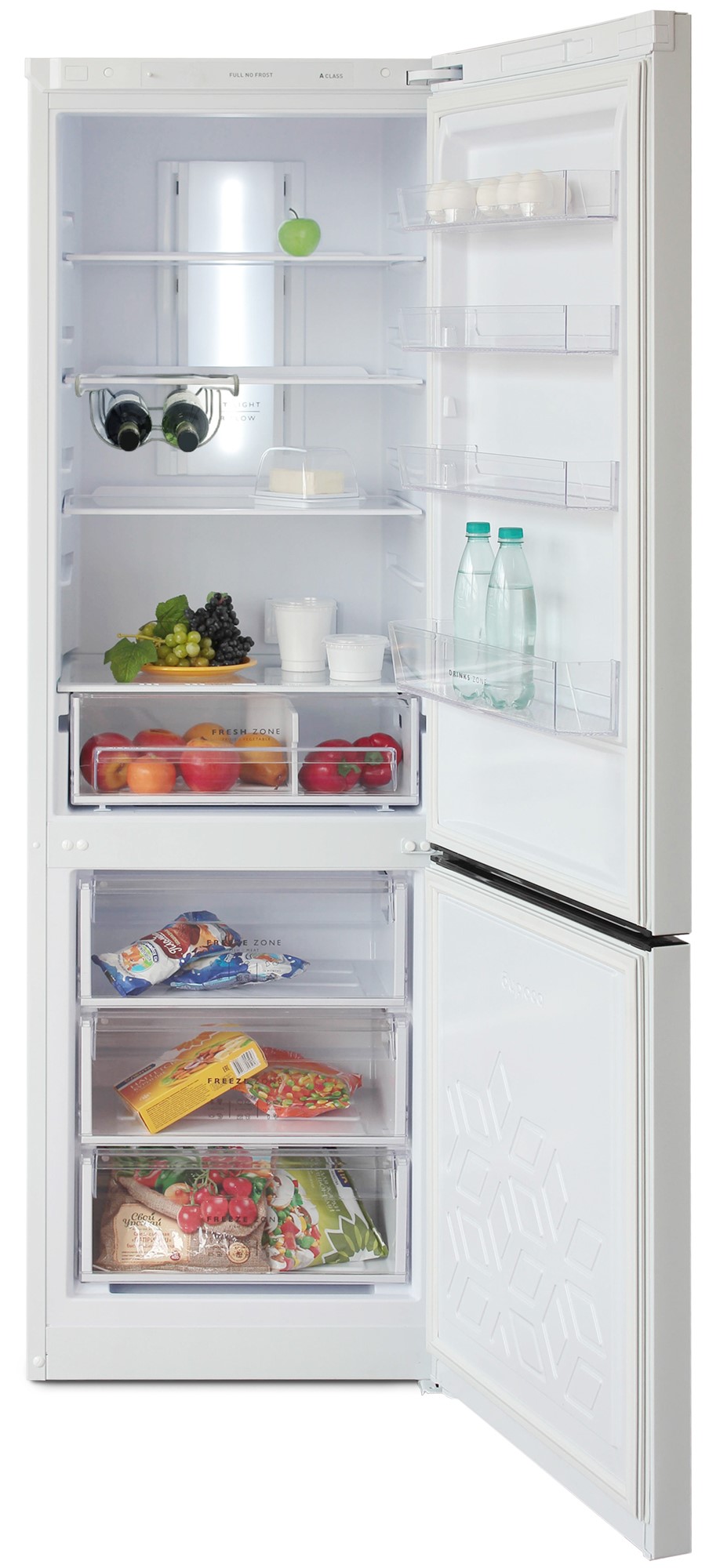 Бирюса 960NF оборудован специальной полкой для бутылок, что делает его еще более удобным в использовании. Внутреннее LED-освещение обеспечивает яркое и равномерное освещение пространства холодильника.