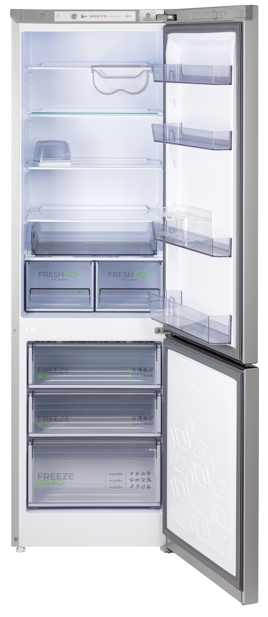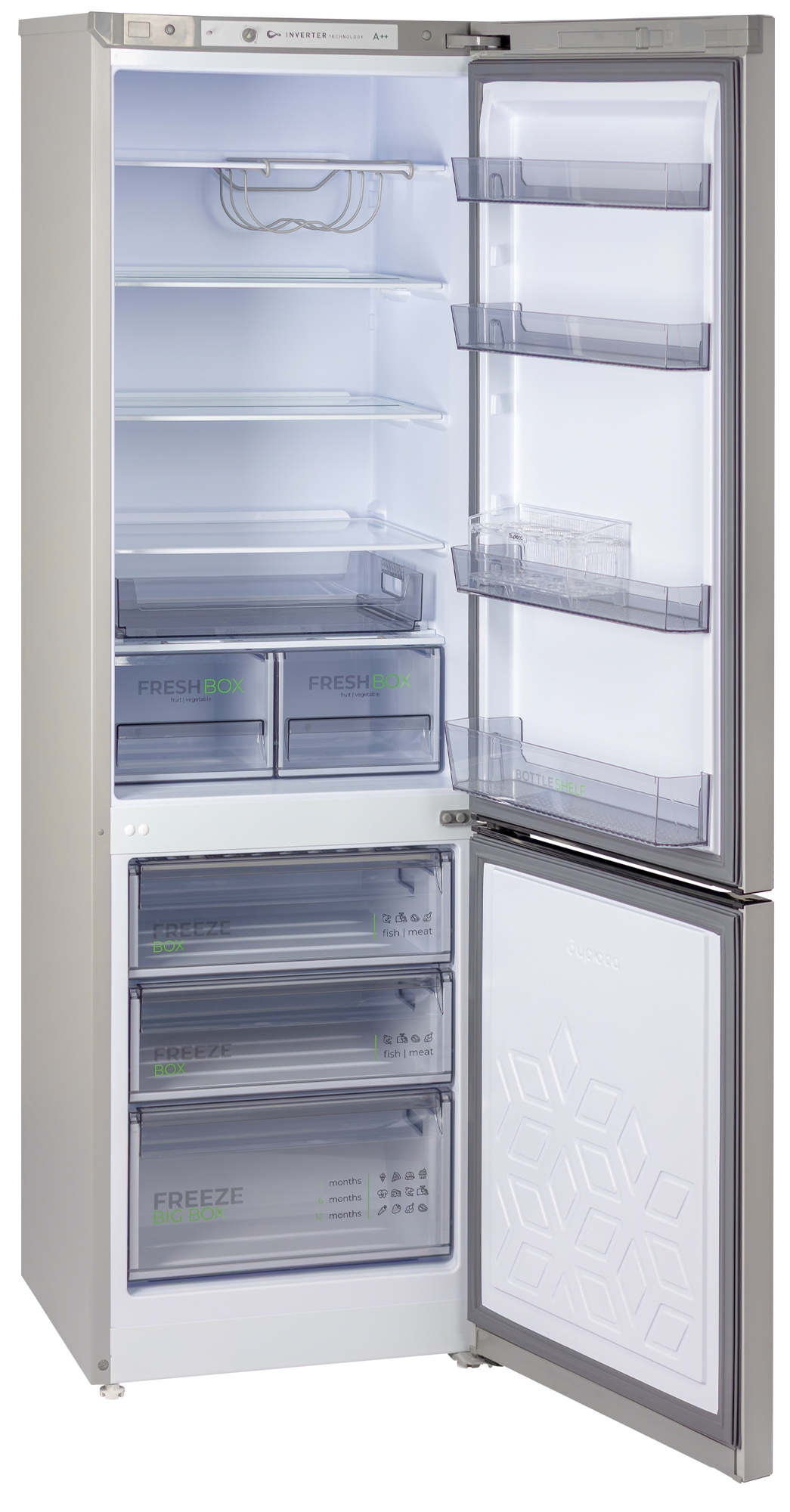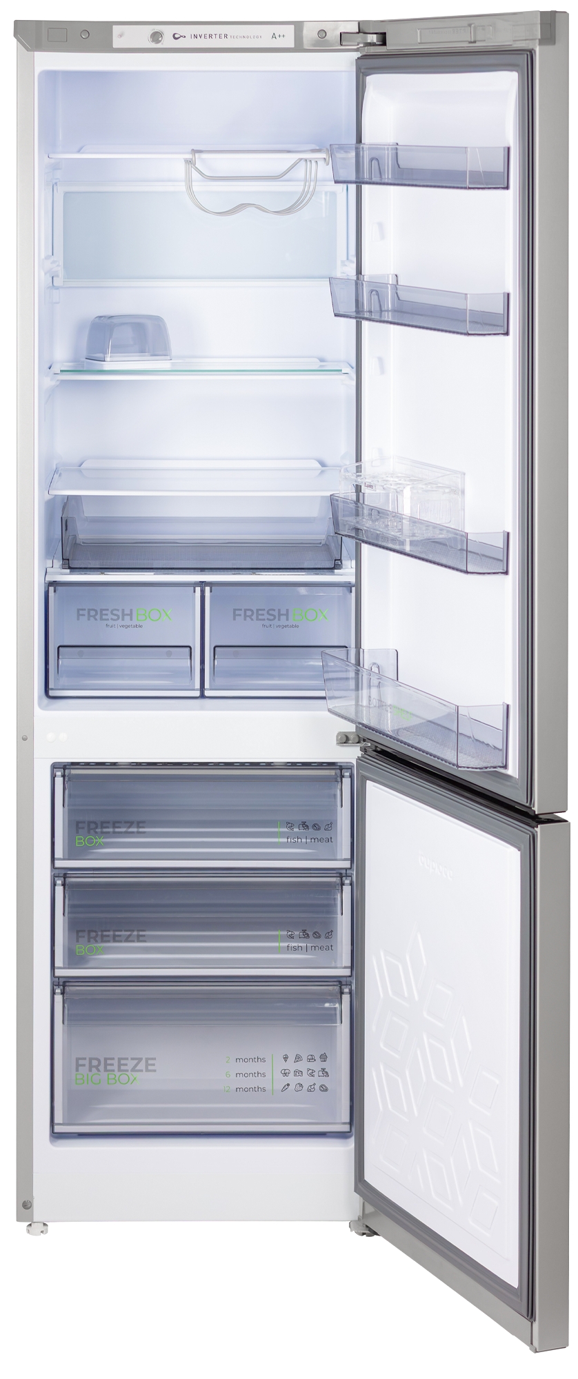 Одним из преимуществ этой модели является наличие инверторного компрессора, который не только обеспечивает стабильную работу устройства, но и способствует низкому суточному расходу электроэнергии — всего 0,58 кВтч при температуре окружающего воздуха 24 °C. Класс энергоэффективности A++ говорит о том, что холодильник поможет вам сэкономить на счетах за электричество.