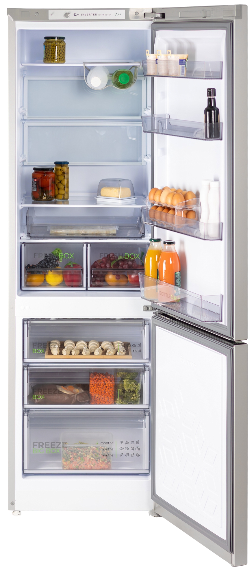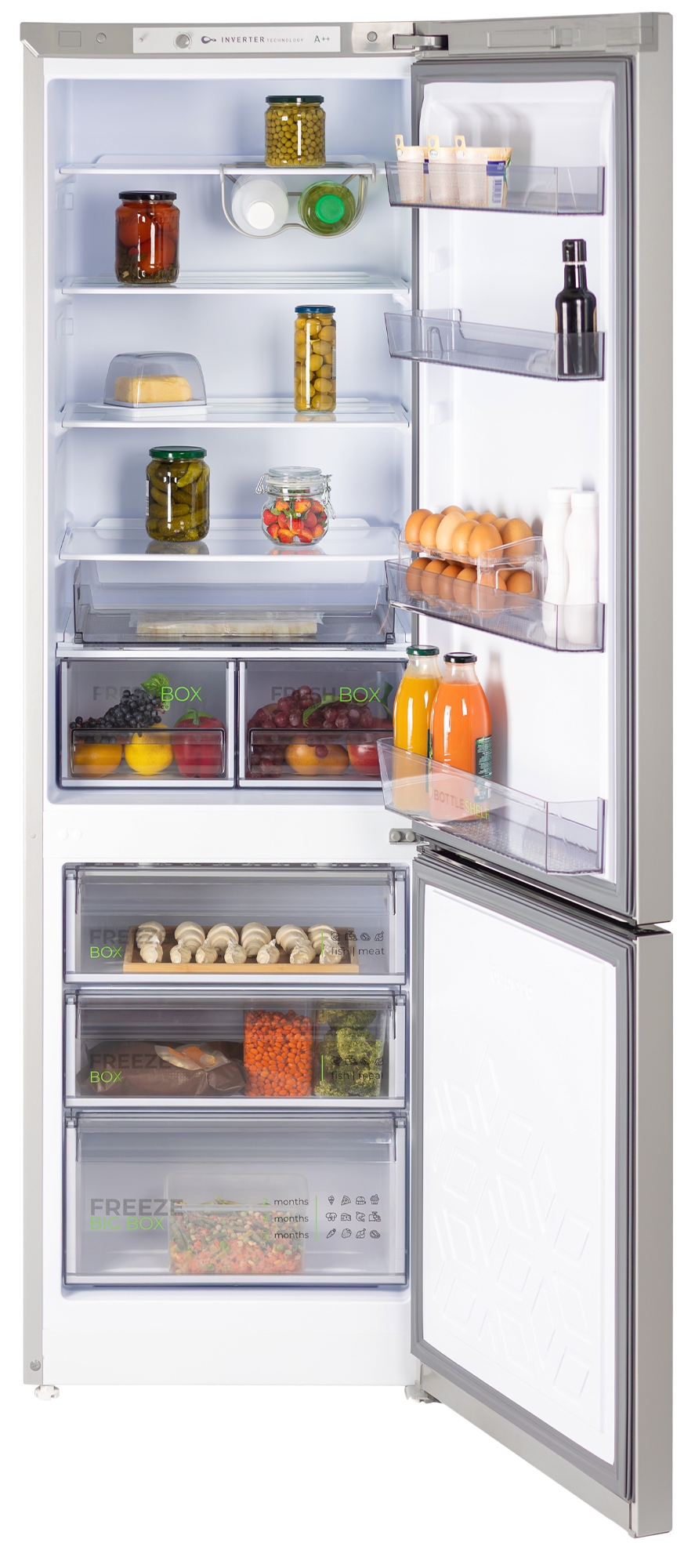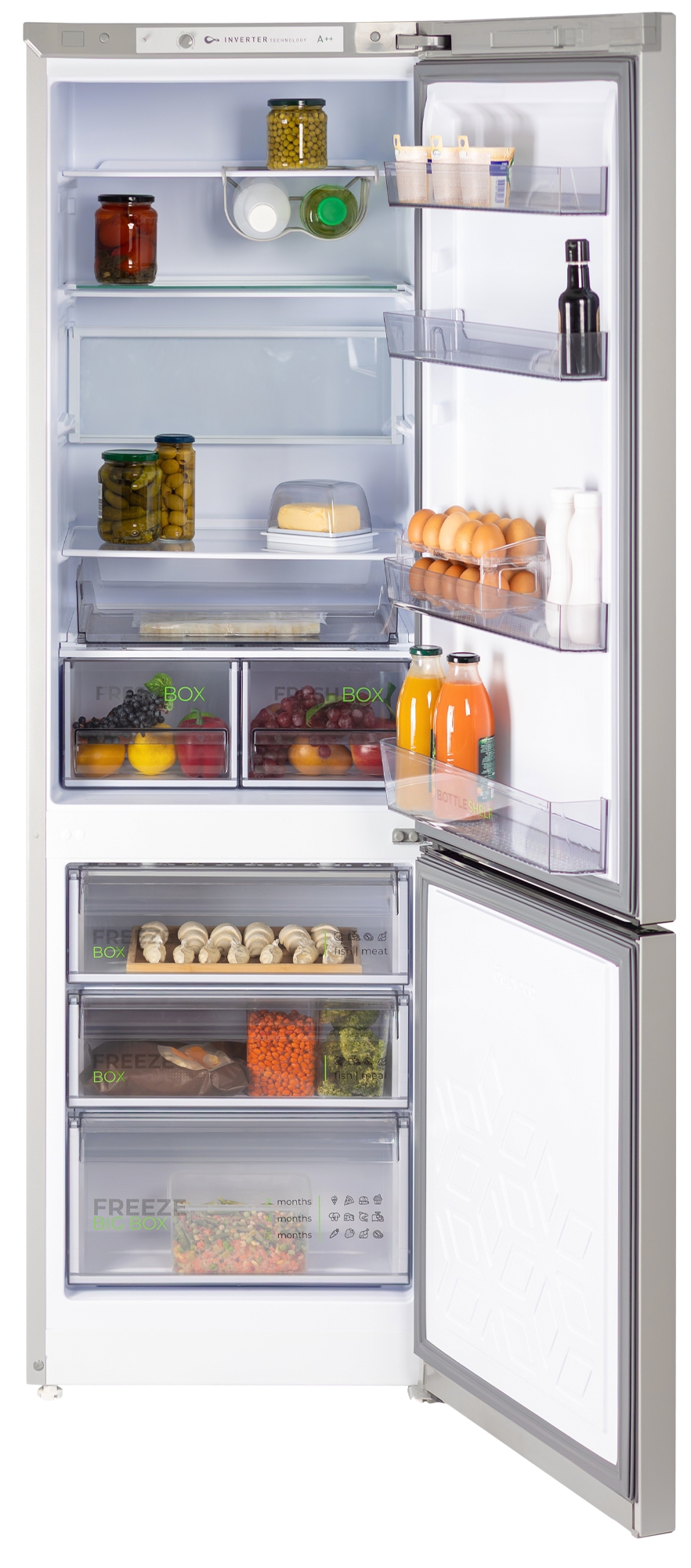 Одним из преимуществ этой модели является наличие инверторного компрессора, который не только обеспечивает стабильную работу устройства, но и способствует низкому суточному расходу электроэнергии — всего 0,58 кВтч при температуре окружающего воздуха 24 °C. Класс энергоэффективности A++ говорит о том, что холодильник поможет вам сэкономить на счетах за электричество.