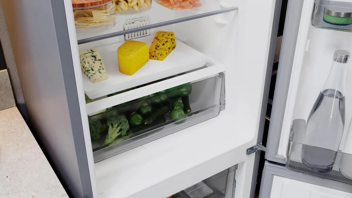 Hotpoint-Ariston HT 5200 S имеет удобное электронное управление, а на его дверце расположены сенсорные кнопки, с помощью которых можно регулировать температуру в камерах.