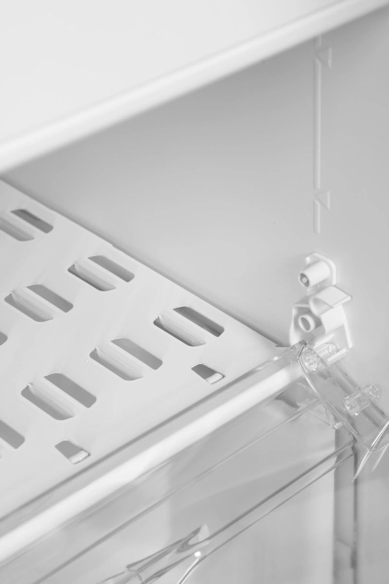 Система размораживания в холодильной камере — капельная, что обеспечивает удобство использования. Полки изготовлены из закалённого стекла, а ящики — из прочного материала, что гарантирует их долговечность и надёжность.