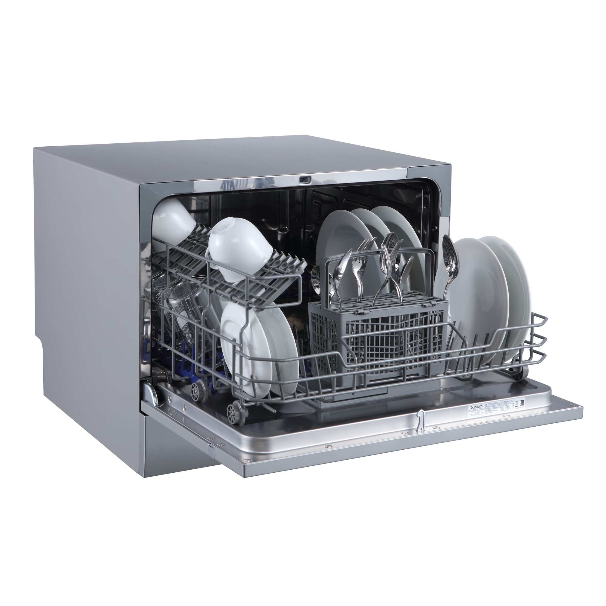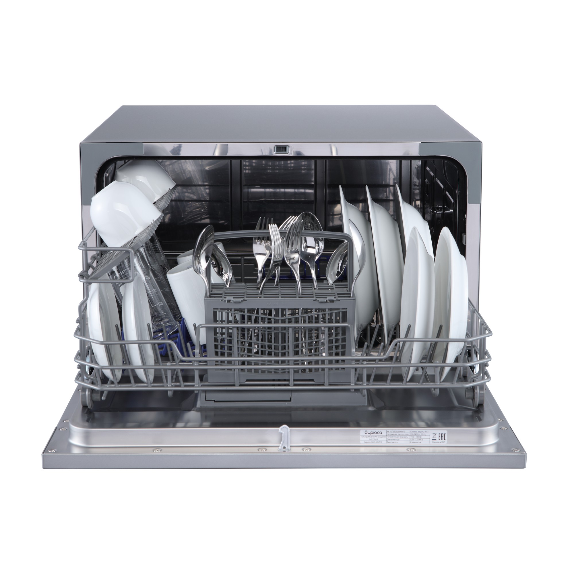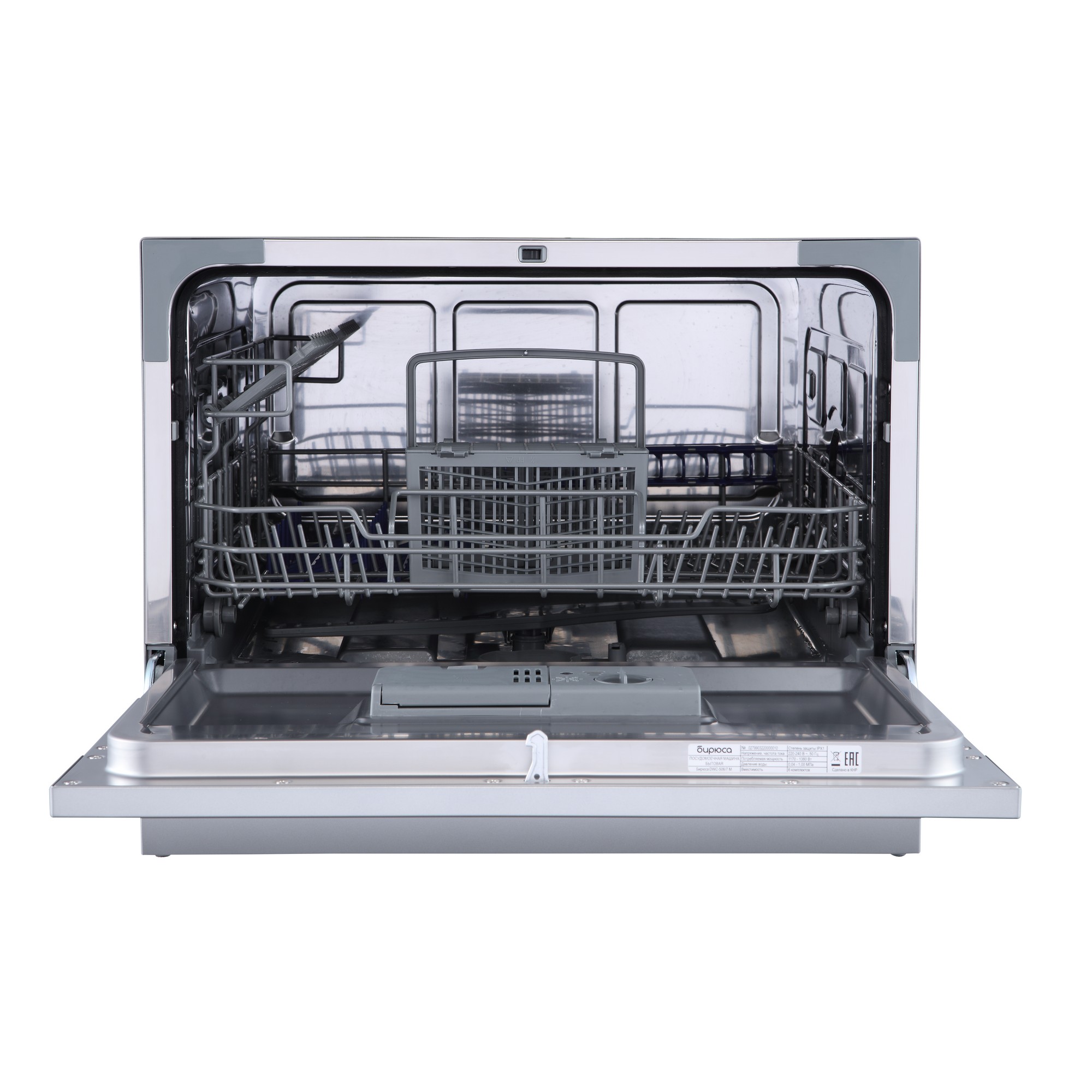 Габариты посудомоечной машины Бирюса DWC-506/7М (55x50x43.8 см) позволяют разместить её даже в небольших помещениях, а малый расход воды (всего 6 литров) делает её ещё более привлекательной для приобретения. Машину можно устанавливать под столешницу, а так же устанавливать отдельно.