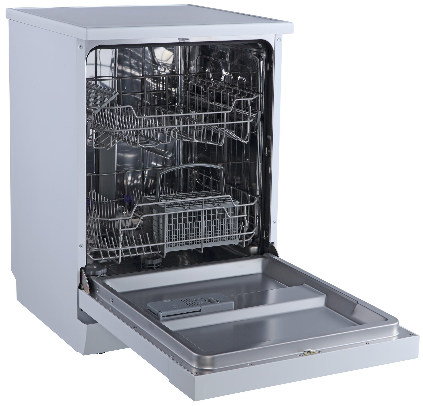Вместимость составляет 12 комплектов посуды, что достаточно для большой семьи. Благодаря низкому уровню шума в 49 дБ устройство не будет создавать дискомфорт при работе.