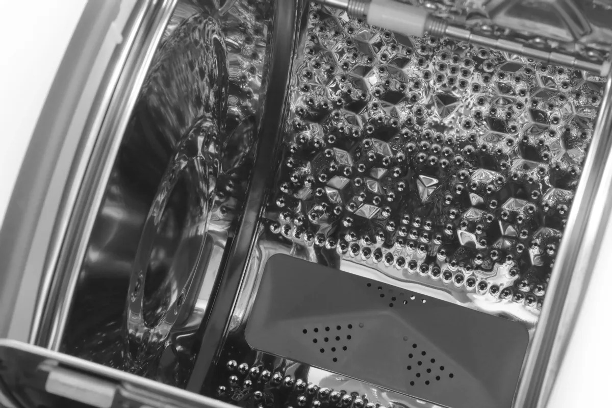Барабан из нержавеющей стали гарантирует долговечность и надёжность, а полимерный бак способствует стабильной работе устройства. При этом уровень шума при стирке составляет всего 59 дБ, что делает работу машины достаточно комфортной даже в открытых пространствах.