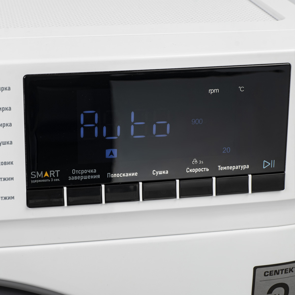 CENTEK CT-1953 имеет 16 различных режимов, включая Smart, автоматическую балансировку белья, беззвучный режим, блокировку от детей, догрузку белья во время работы, режим «Моё время», очистку барабана. Удобное сенсорное управление обеспечивает лёгкость выбора нужного режима.
