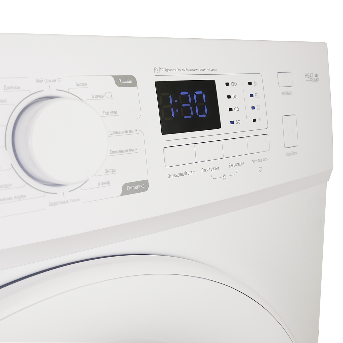 - Удобство использования. LED-дисплей и внутренняя подсветка делают использование сушильной машины максимально удобным. Вы всегда будете знать, какой режим выбран и сколько времени осталось до окончания сушки.